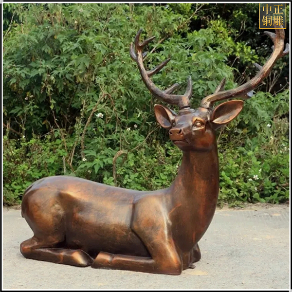 大型窩著的銅鹿雕塑