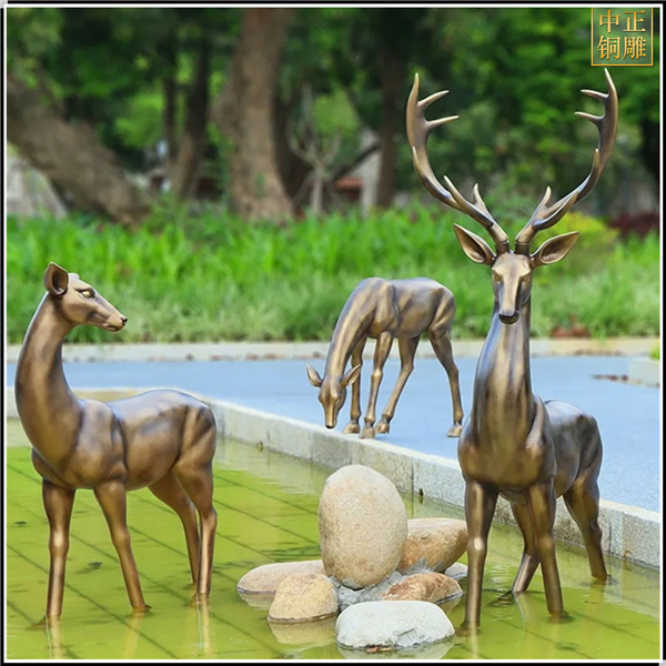 仿銅小區(qū)銅鹿雕塑擺件
