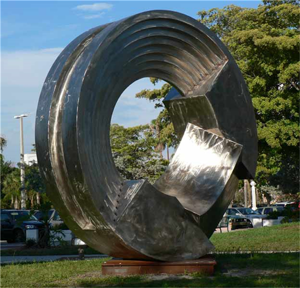 其二是指根據傳統民俗習慣,選擇大眾所熟知的象征物體為本體,表達一種特定的意蘊,運用象征的藝術手法,具體化和形象化抽象的概念表達一種藝術意境,從而表現作品的張力與藝術氣氛。其次,再說一下標志性的城市雕塑的隱性象征,就是通過不可視的象征意義,以象征性的創作手法將城市精神文化歷史沉淀通過抽象的概念以雕塑的形式表現出來。