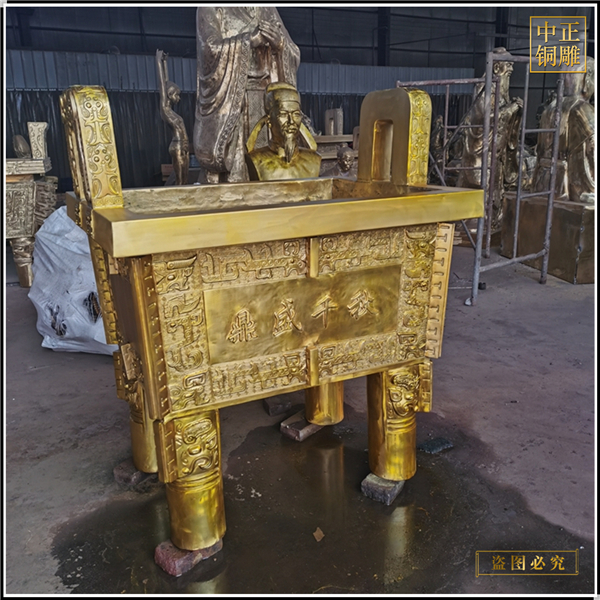 銅鼎具有較高的藝術價值,在銅鼎外圍的銅雕記錄著當時的重大事件,現代仿品可以用在祝福祈福。當人們游覽名勝古跡時,銅鼎的出現給人一種厚重之感,有安穩、踏實的實在感。歷史的莊重感撲面而來,那是經過歷史的滄桑,見證著時光的變換,叩響了歷史的鐘聲,久久回蕩在耳畔。