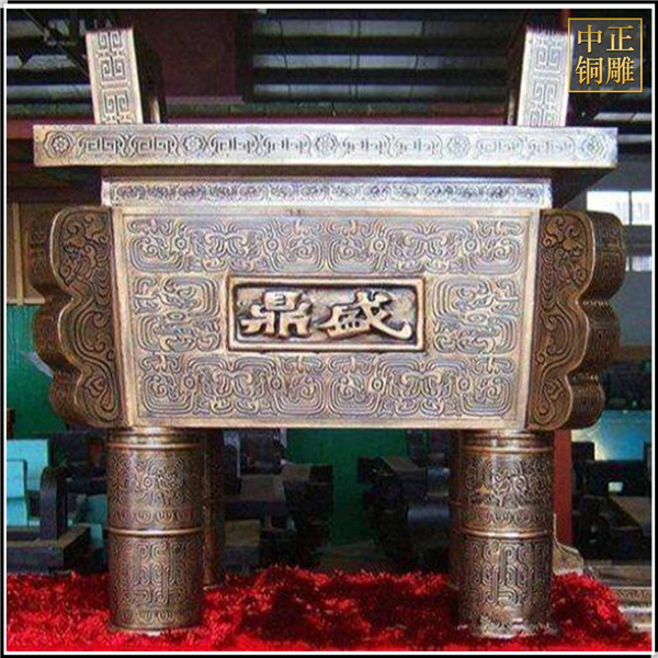 圓鼎顧名思義就是三根立腿,兩只提耳,是用來調和各種味料的寶器。原本是古代的飪食器,后來變為統治階級政治權利的重要象征,視為鎮國之寶和傳國之寶,也是“明貴賤,別上下”等級制的標志。但是現在的圓鼎大多都是仿造古代的圓鼎由銅鼎鑄造廠家制作而成的。中正銅雕-四羊方尊銅鼎、四羊方尊銅鼎價格、四羊方尊銅鼎廠家,我廠是一家以設計、制作、安裝為一體的發展型企業。公司坐落在中國銅雕之鄉---河北唐縣,成立于1984年。公司自成立以來,以優質的雕塑工藝,優異的性價比,一體化的銷售網絡,高效、完善的售后服務,飛速發展。成為了擁有設計、銷售、生產、安裝、維護為一體的銅雕塑制作商。